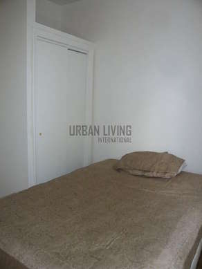 The second bedroom has a window facing the courtyard and is equipped with a full size bed, a closet and a bedside table.