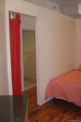The bedrooms' walls do not reach the ceiling and are each separated by a curtain.