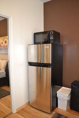 The small kitchennete is equipped with an electric burner, a microwav and a refrigerator with freezing compartment.