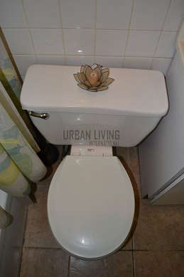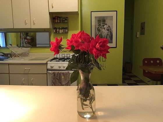 You enter the apartment directly into the opened kitchen to share with the other tenant. The kitchen is equipped with a refrigerator, a stove, an oven, and all the cookware necessary. It overlooks the courtyard and has linoleum floors.