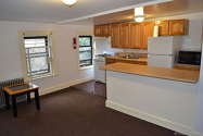 You enter the apartment into the living room. The open kitchen offers a stove, an oven, a microwave and a refregirator with freezing compartment.