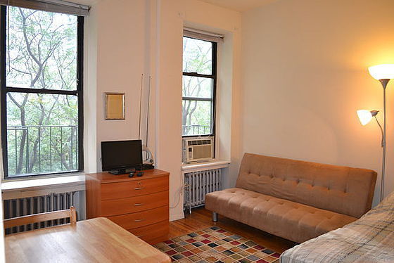 This is a furnished studio located between 1st and 2nd avenue in Midtown East.