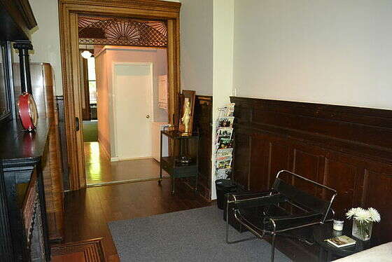This apartment is located on the ground floor of a charming 1895 brownstone on 119th Street between Lenox and Seventh Avenue. This one bedroom apartment has a main entrance and the apartment has its own private video intercom. This apartment is spacious, bright and has many original details, hardwood floors and decorative fireplace.