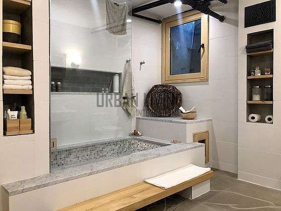 The main entrance of this duplex apartment gives you access to a small open hallway which leads on the left side to the living room and at the end, also on the left side, to a walk through to the kitchen.