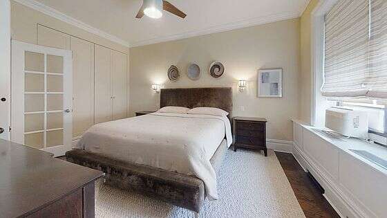 min 1 monthMake yourself at home in this top floor, beautifully renovated and furnished pre-war apartment. The Great Room is lovely and spacious, with full views of the Beaux-Arts Brooklyn Museum and Brooklyn Botanical Garden, and invites relaxation. The open kitchen with a beautiful center island is the perfect place for a morning coffee or quick evening meal, while the adjacent dining area has plenty of room for entertaining. Quality finishings are foremost, with marble countertops, gorgeous walnut and white cabinetry, Sub Zero refrigerator, Miele dishwasher and Bertazonni range.