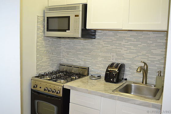This is a fully furnished studio located on the second floor of a walk up building at Clermont Avenue.