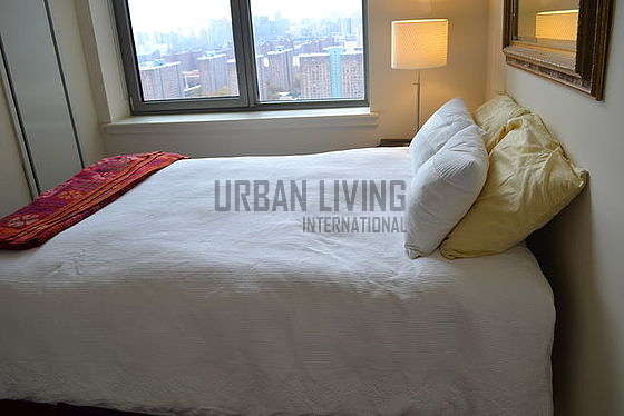 This is a very bright fully furnished 3BR/ 2BA apartment located on the 25th floor of a modern high-rise building with elevator, swimming pool, doorman and gym at Harlem.