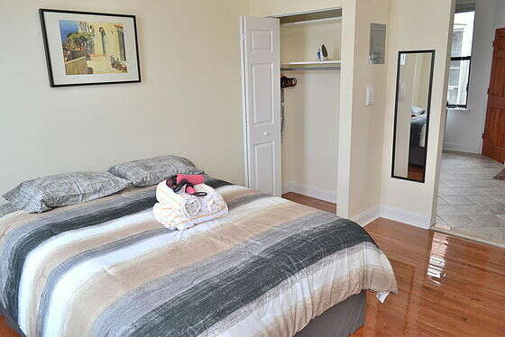 This is a fully furnished studio located on the third floor of a walk-up building in Astoria.