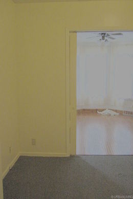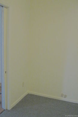 Bedrooms with carpeting floor, and the big living room with wooden floor.