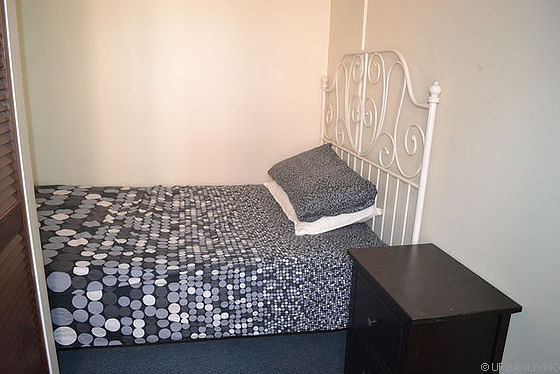 Both bedrooms have carpeting floors, a double size bed and a closet. The first room overlooks a shaft, and the second bedroom faces the backyard.