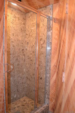 The entrance has a large closet on the right. After the closet on your right side you can access to the hallway with the bedroom and the bathroom. On the left side of the entrance you can find the second bathroom of the apartment with a toilet, a sink with a mirror, and a separated shower.