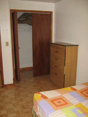 The 2 bedrooms are in the back of the apartment with a view on the backyard and feature each two windows, a double size bed and a closet. There is wooden floors.