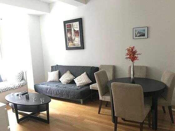 min 3 mesiThis is a large fully furnished 1BR/1BA apartment on John Street in the Financial District. The high ceilings apartment is located in a pre-war/ high rise elevator building with fitness room, on-site laundry, doorman, courtyard and a rooftop deck and also a biliards room.