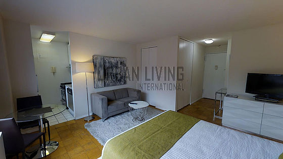 This is a fully furnished studio apartment located 56th Street, between 8th and 9th Avenue. In the Heart of Columbus Cirle, the 25 story full service building features a gym, an on-site laundry, a roofdeck and an on-site parking.