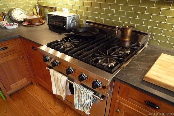 Enter this triplex house and step into a renovated wooden floored living room furnished with a sofa, two armchairs and a chair and featuring original details like a fireplace, moldings and high ceilings. The living room opens up into a large beautiful windowed kitchen equipped with a stove, an oven, a microwave oven, a refrigerator, a huge dining table, five chairs and all the necessary cookware. Open the kitchen's back door, and walk into a delightful private backyard with a built in wooden deck.