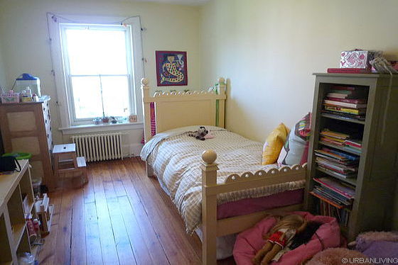 Walk up the staircase to the second floor comprising two separate wooden floored bedrooms and a full bath (with a sink, a toilet and a separate shower in a tub): one bedroom faces the street and includes a queen size bed, a closet and two windows; the second one - a little smaller - is furnished with a large single bed and features two windows facing the backyard.