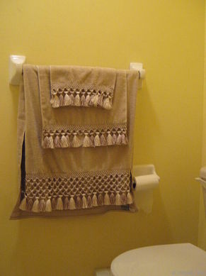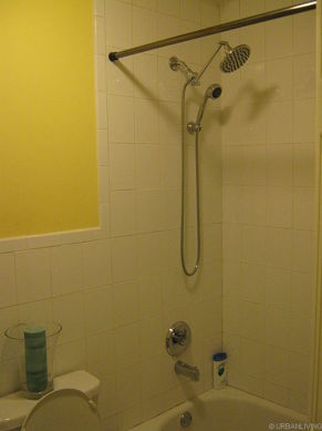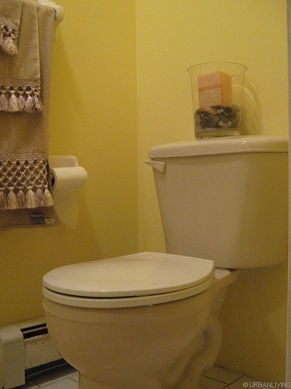 Related to this room, there is the second bathroom, with tub, shower in the tub, and toilets.