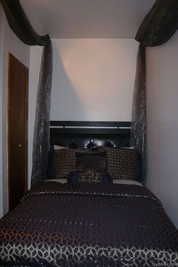 Next to the kitchen, on the left are located the two bedrooms. The first bedroom has two twin beds, a bedside table and a closet. And the second bedroom features a Queen size bed and a closet. Both bedrooms have a window overlooking the court yard.