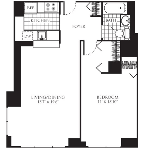 Квартира меблированное 1 спальня - Sixth Avenue